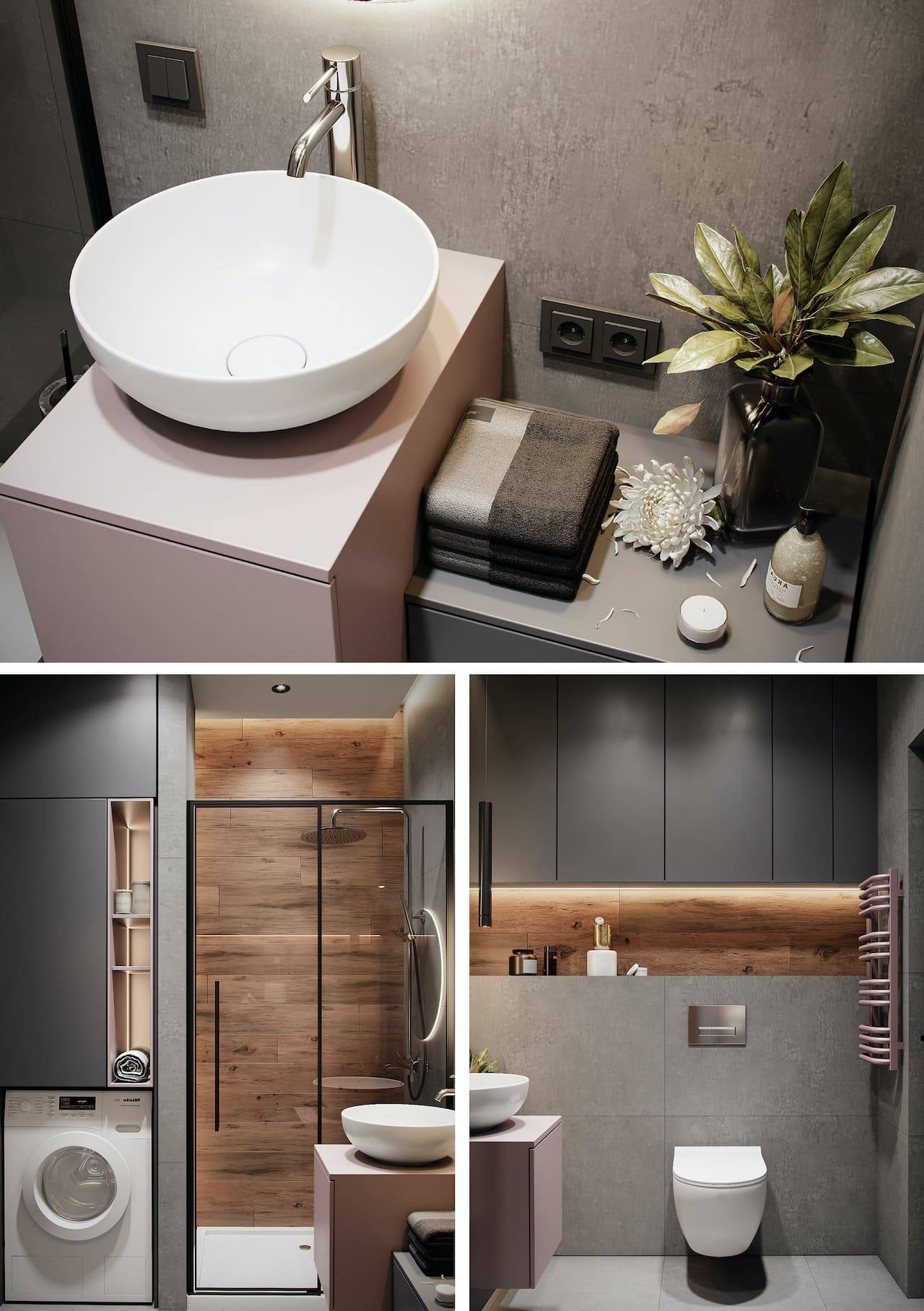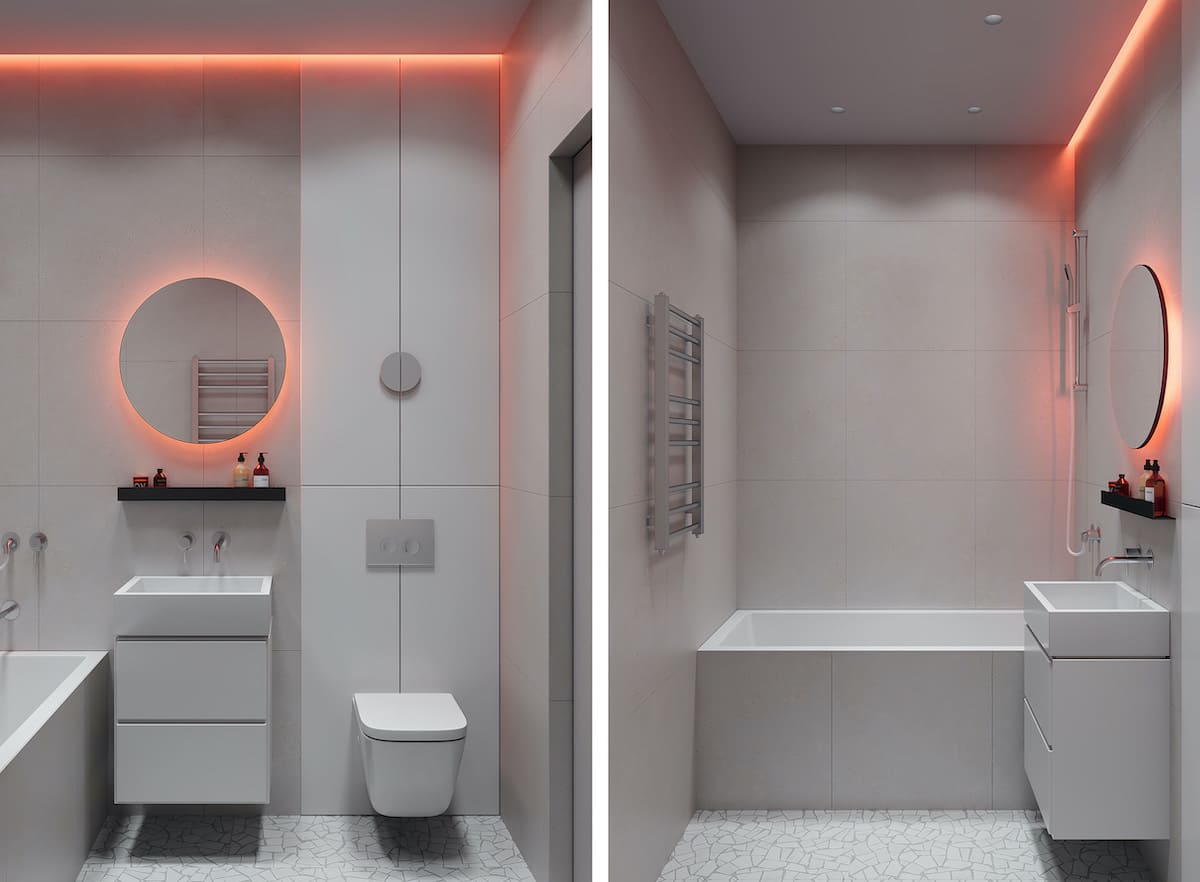 Как правило, в небольших квартирах ванная совмещена с туалетом, это рассчитано на экономию места. Несмотря на размеры, при правильном расположении, в нее можно поместить все необходимые элементы мебели и сантехники: