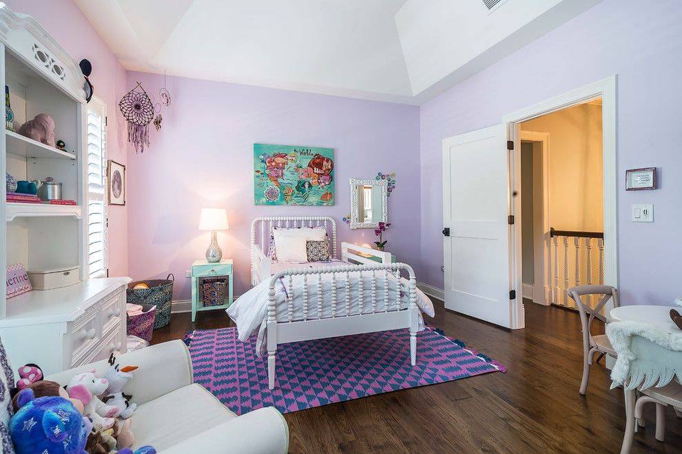 Распределение площади для девочек разных возрастов может стать проблемой, если свободные квадратные метры в дефиците. Оптимальное решение – создание перегородки, фактическое разделение. Но если это невозможно воплотить, стоит разделять зоны отделкой, ширмой, декором, мебелью.