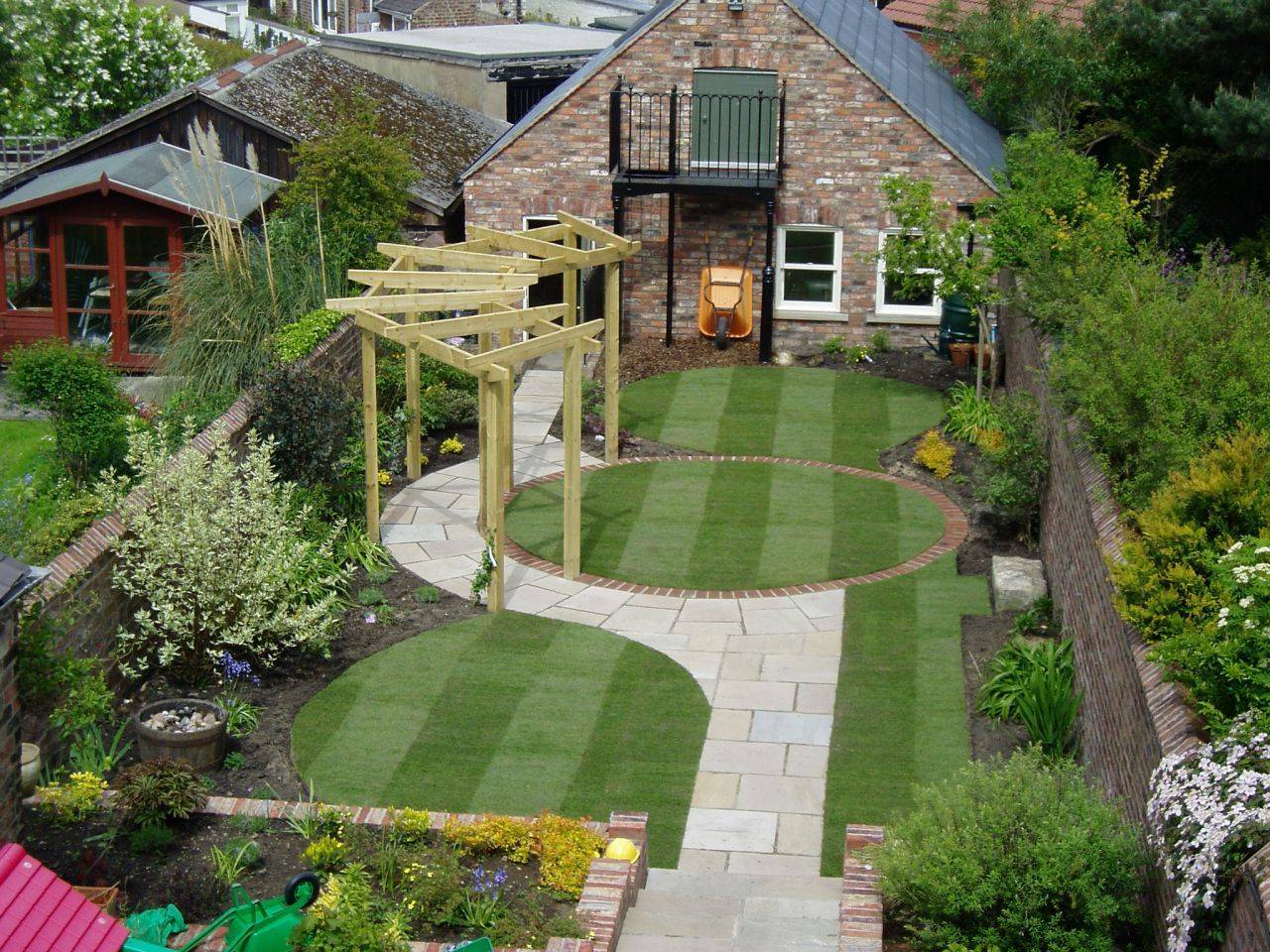Сперва рекомендуется определиться с месторасположением, дизайном помещений, заняться их установлением, а затем уже приступать к озеленению и декорированию участка.