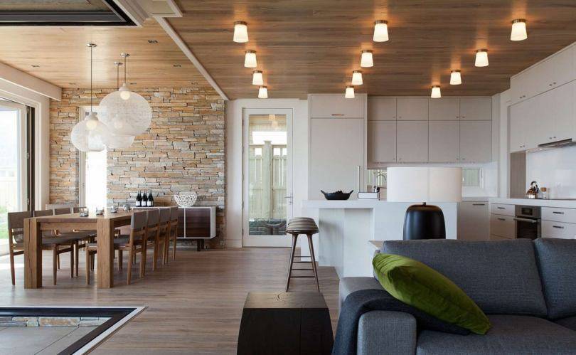 При обустройстве интерьера дома в современном стиле следует придерживаться основного правила: не экономить на отделке, обстановке и оформлении. Настоящий стиль проявляется как раз в том, что внешняя простота представлена достойно: