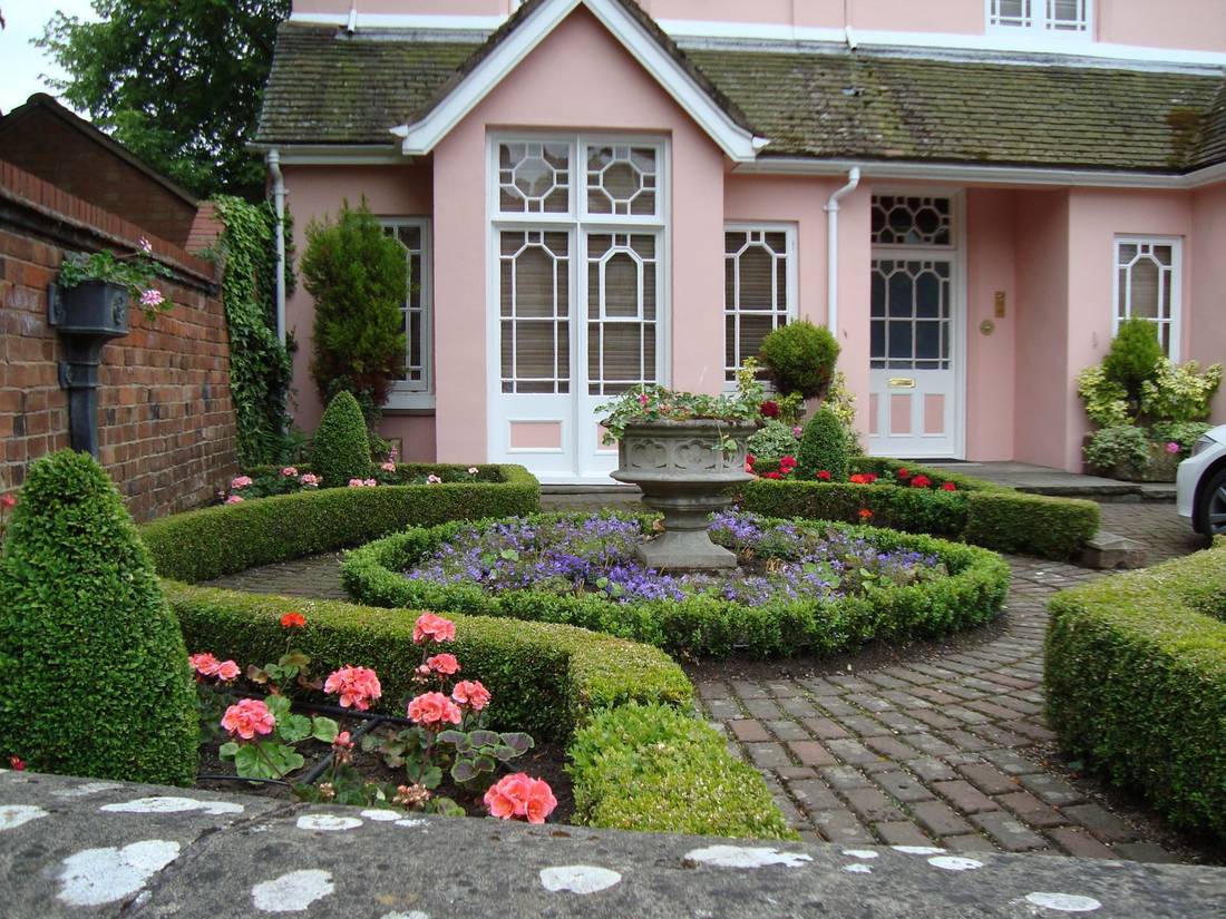 Плавность линий в насаждениях и архитектуре – главные особенности английского стиля. Такой гармонии можно достичь, используя все максимально натуральное. Это касается не только растений, но и камня, который в основном используют для дорожек.