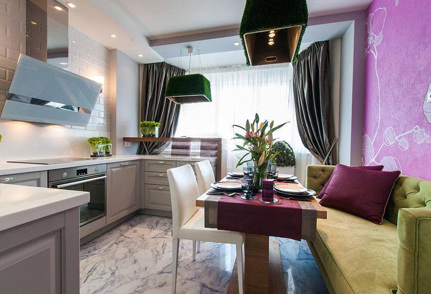 Все это должно найти отражение в дизайн-проекте, особенно когда это дизайн кухни 11 кв.м. с присоединенным балконом или лоджией после перепланировки или частичной реконструкции.
