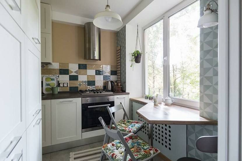 Если вы все-таки хотите добавить пространства кухне, то можно рассмотреть вариант перепланировки. В квартирах, где кухни имеют площадь 4 кв. м, совместить ее можно с лоджией или гостиной. Это прекрасный вариант для зонирования.