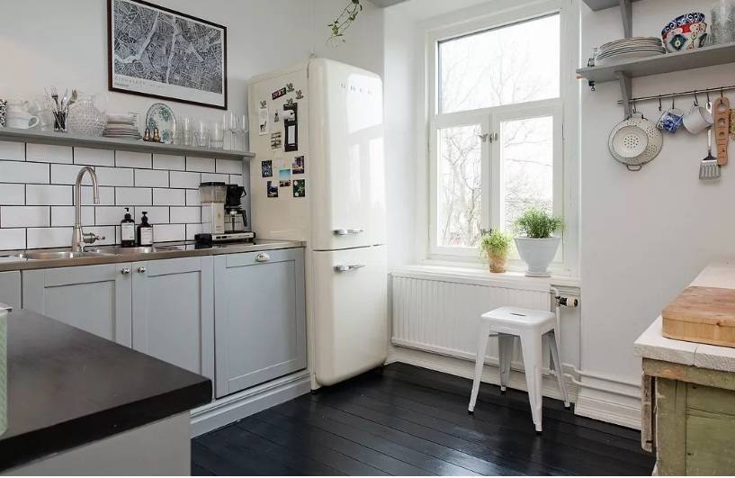 Очень часто для экономии места холодильник и вовсе не ставят на кухне из-за его больших габаритов. Расположение осуществляют рядом в коридоре либо устанавливают его в прихожей.