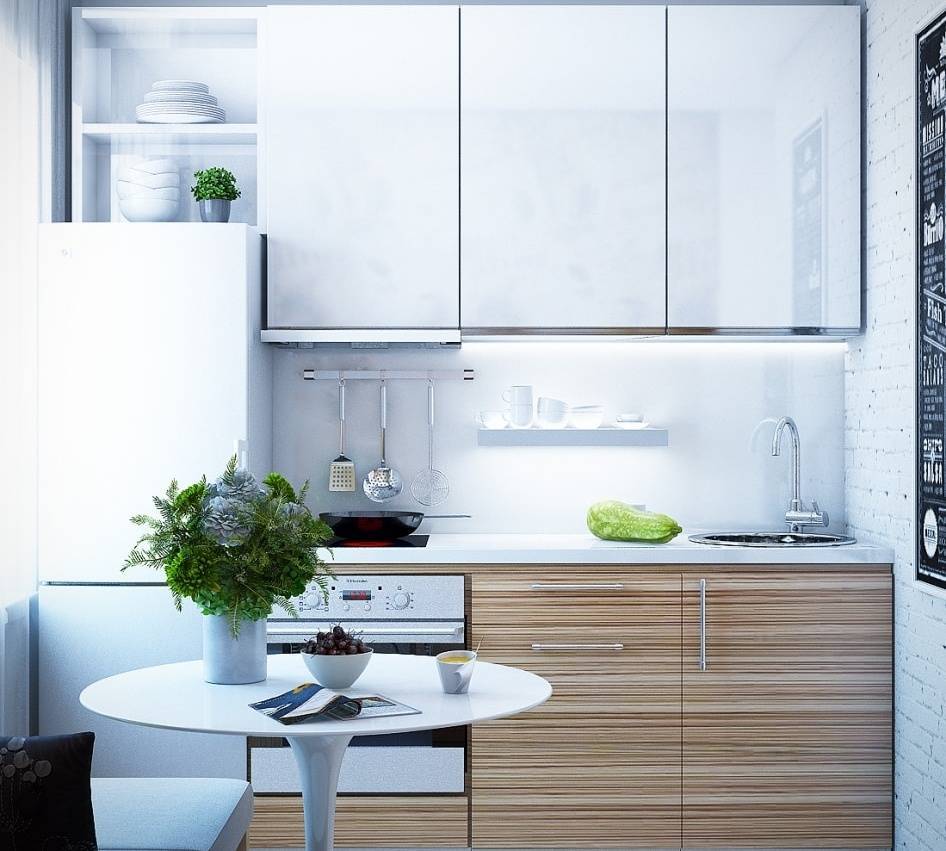 Затевая ремонт в маленькой кухне, необходимо продумать, как можно визуально и фактически освободить пространство. Дизайнеры предлагают множество решений, позволяющих правильно обыграть малогабаритную комнату и создать иллюзию свободы, простора. В этом большую роль играет свет, цвет, принт. Лучший способ увеличить комнату – выбрать светлые тона для отделки. Приемы визуального увеличения пространства: