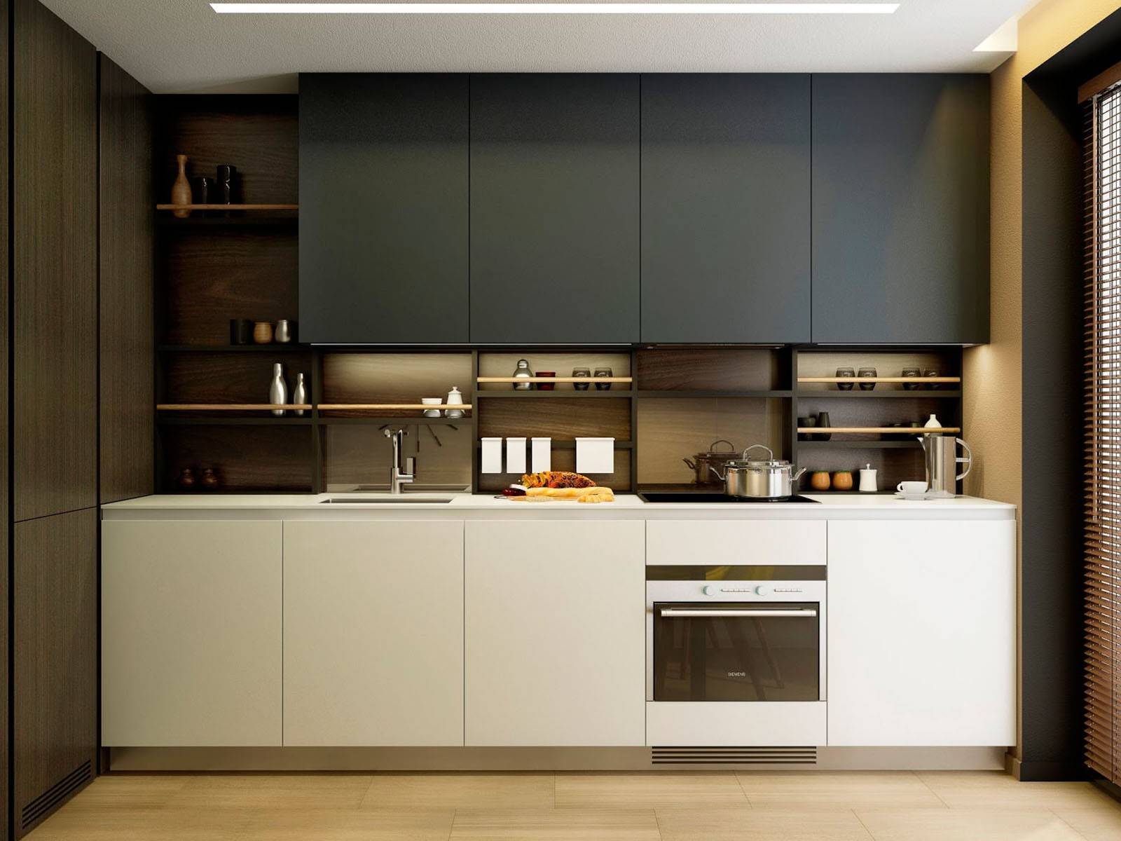 Но в таком случае может не хватить места для хранения утвари и продуктов, поэтому такой вариант подходит для кухни в квартире, где проживает один или два человека.