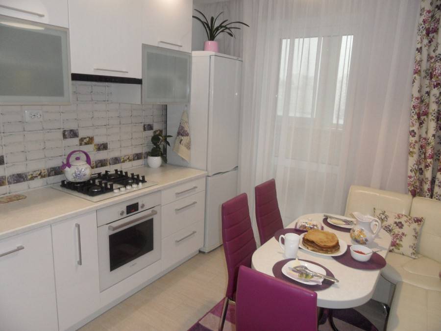 Кухня, смежная с балконом. В некоторых случаях возможно объединить ее с лоджией или перенести рабочую зону с мойкой под окно, для лучшей естественной освещенности. В панельном доме при этом обязательно следует учитывать строительные нормы и правила, касающиеся системы отопления!