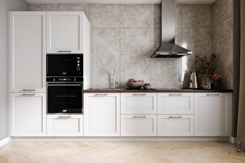 Встраиваемый духовой шкаф размещают либо в нижнем модуле, либо на уровне рук — это упрощает его использование.
