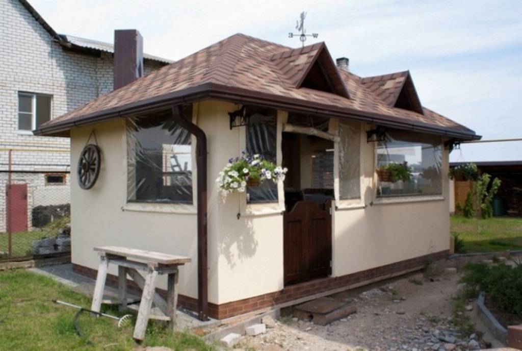 Многие домовладельцы и дачники совмещают такие кухни с банями, летним душем, погребом или мастерской на участке. А некоторые еще и утепляют их дополнительно.
