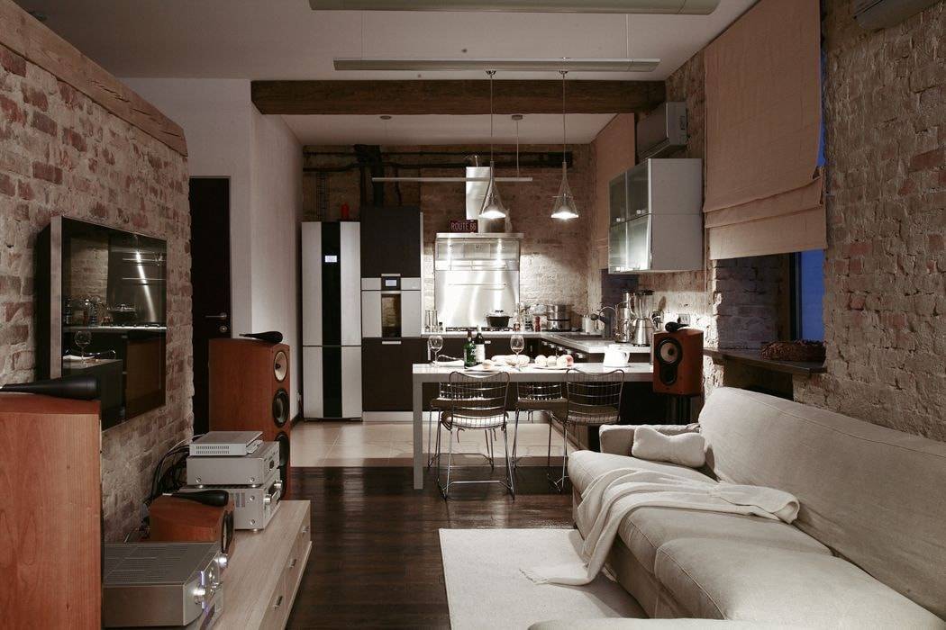 При полном демонтаже стены следует позаботиться об установке панорамных окон, что позволит вам по утрам за чашечкой кофе любоваться восходом солнца, а вечерами наблюдать прекрасные картины заката. Что касается общей стилистики оформления перепланированных помещений, то этот вопрос полностью зависит от выбора хозяев квартиры.