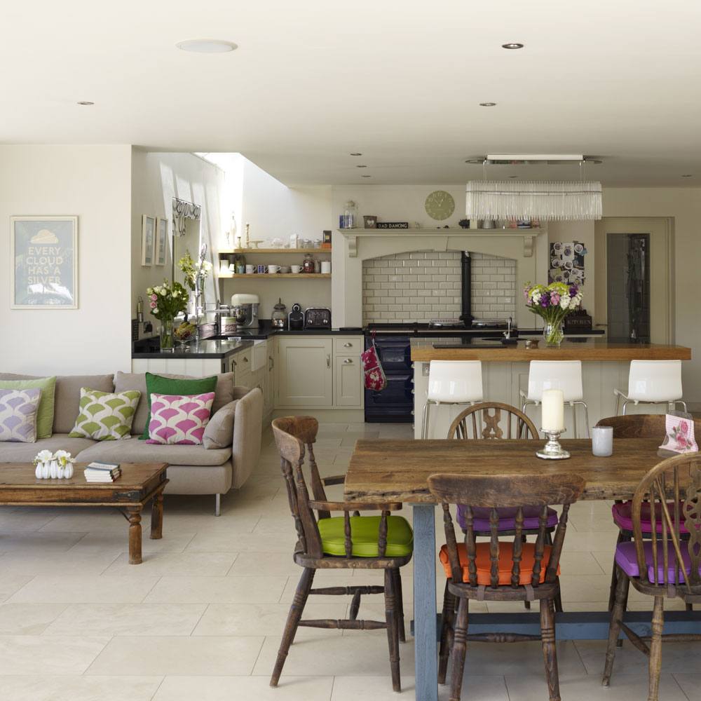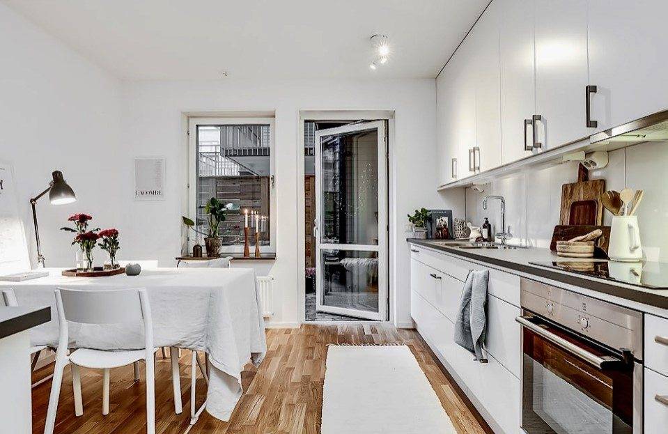 В небольшой кухне, открытой для гостиной, ковер — это аксессуар с множеством функций. Он также имеет возможность указывать границы области в большом открытом пространстве. Чаще всего квадратные и прямоугольные ковры выполняют эту функцию. Они придают комнате более уютный вид.
