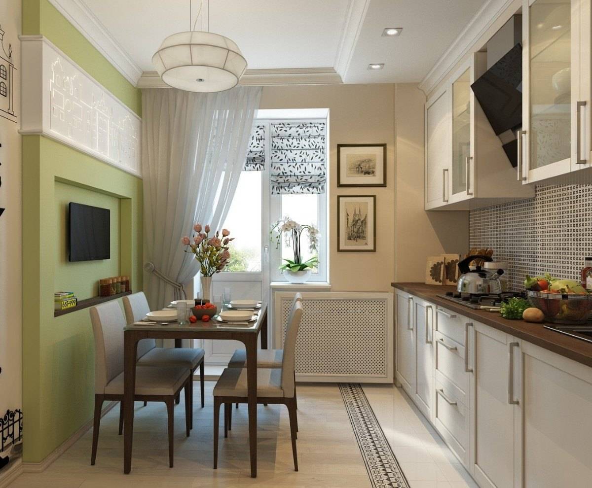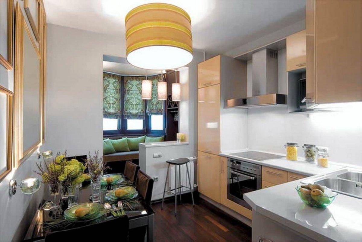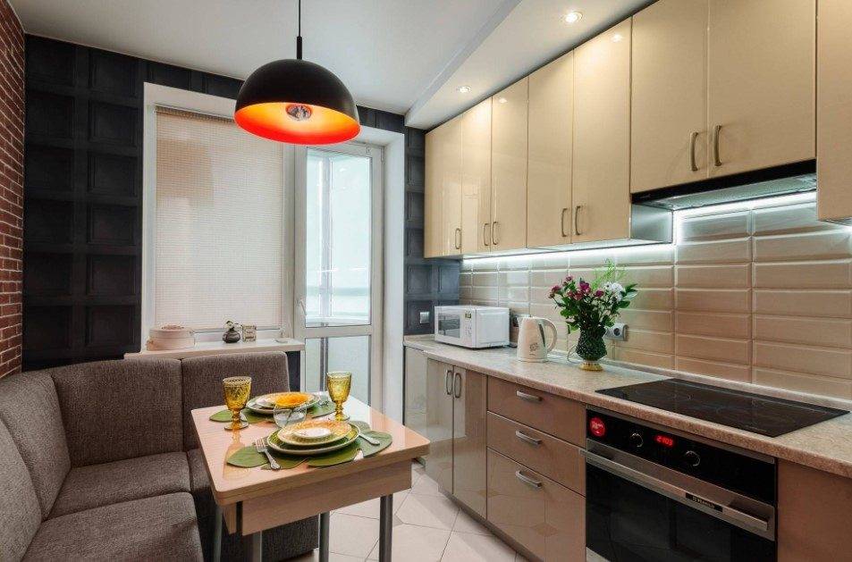 Наличие небольшой по размеру кухни в 9 кв. м. актуально для кирпичных и панельных многоэтажек. И насколько бы такое помещение не казалось миниатюрным, здесь прекрасно можно разместить кухонный гарнитур, обеденный стол, минимальное количество бытовой техники и прочих предметов интерьера, особенно если речь идёт о варианте объединения кухни с балконом