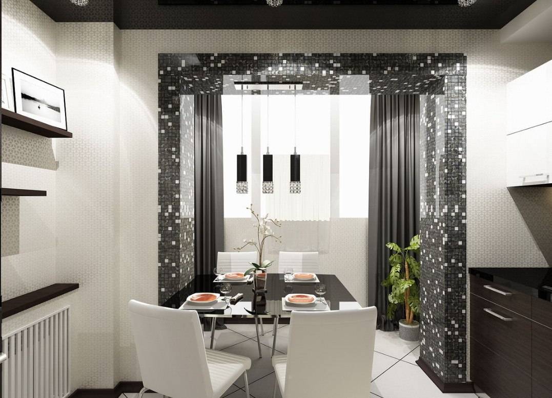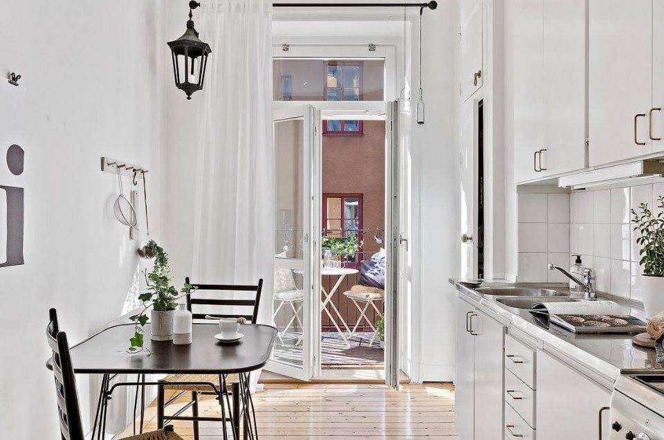 Дизайнерское решение – отделение области балкона от кухни при помощи окон в пол смотрится «по-европейски» стильно и идеально подойдёт для обустройства зелёной зоны или зимней оранжереи, на месте бывшего склада ненужных вещей. Не менее интересно смотрится идея замены окон или дверей одним из видов арочного проёма, и здесь можно не только воспользоваться классическими предложениями, но и воплотить в реальность самые нетривиальные идеи.