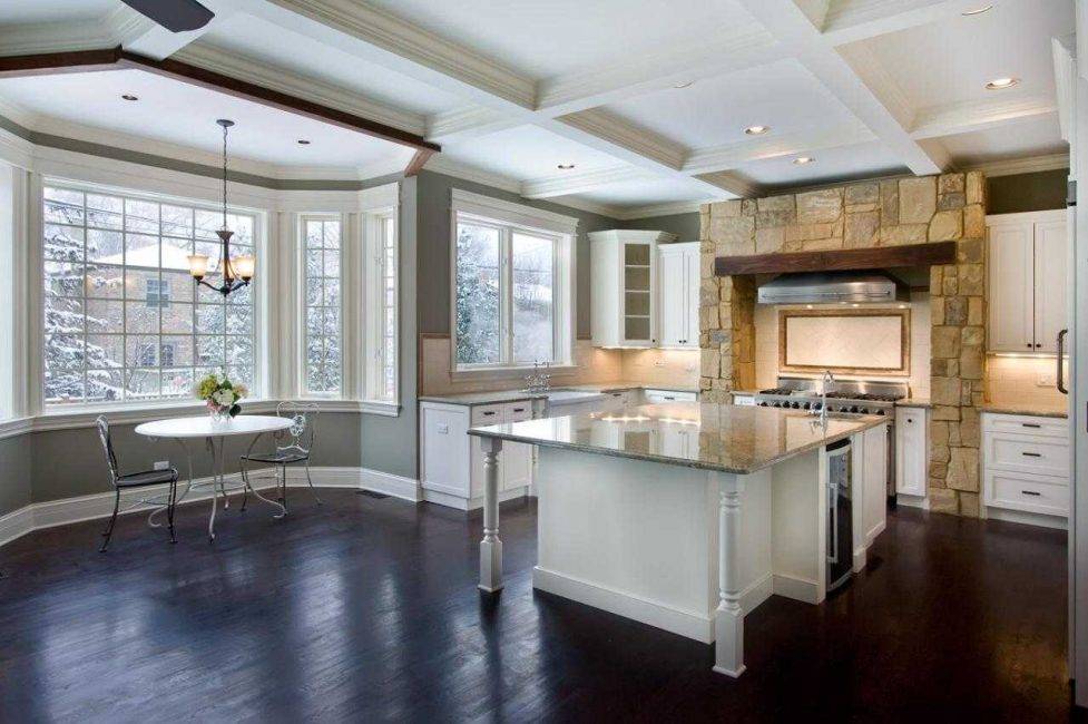 Также, чтобы использовать пространство оптимально, лучше всего разместить вдоль стен угловой или линейный кухонный гарнитур, а обеденную зону расположить в самом эркере. Обеденный стол в этом месте выглядит оптимально и выигрышно.