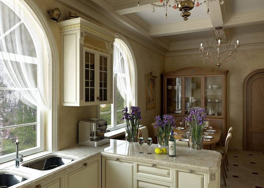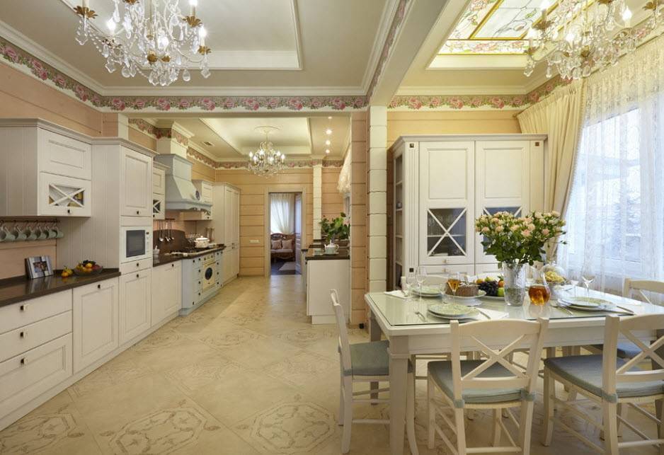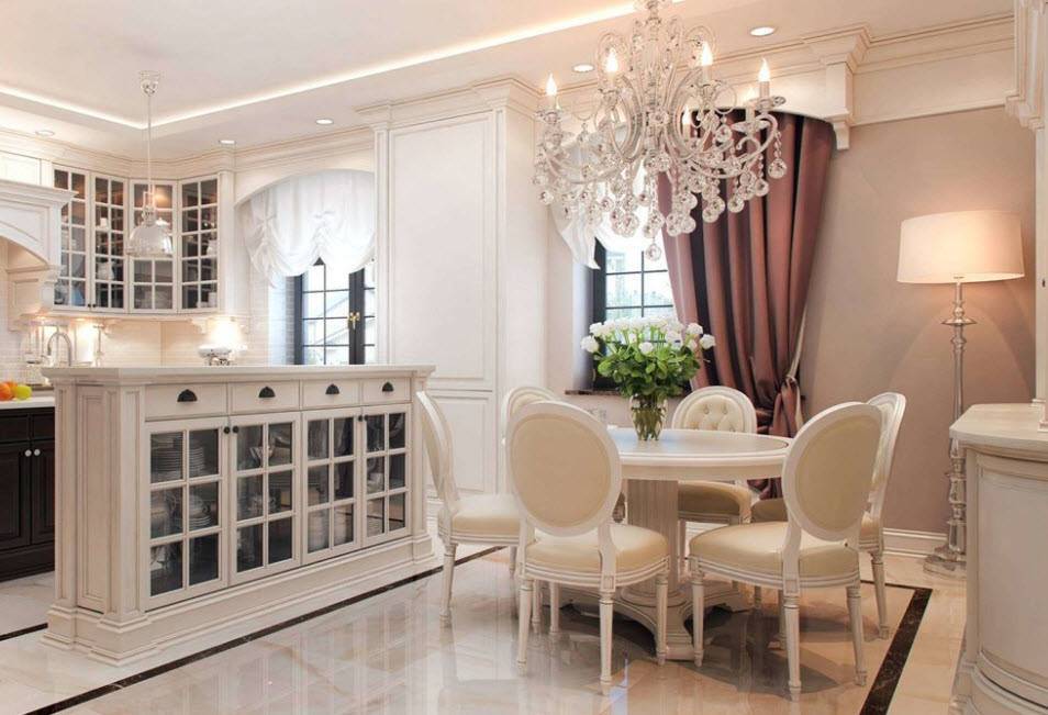 Светлая кухня-гостиная в классическом стиле