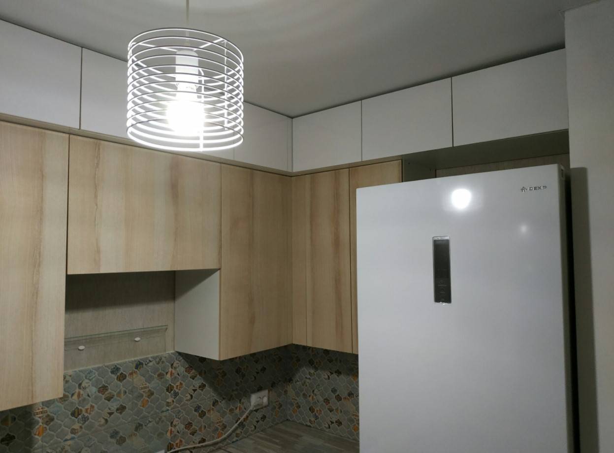Стильный интерьер с современной кухней под деревоИсточник mrdoors.ru