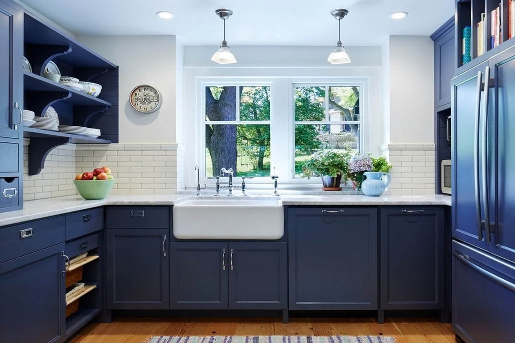 Существенный плюс обычной покраски – возможность в любой момент обновить ремонт с минимальными расходами. И не забывай про фартук над рабочей зоной: его можно выложить плиткой, закрыть стеклом, украсить панелями с принтом или мозаикой.