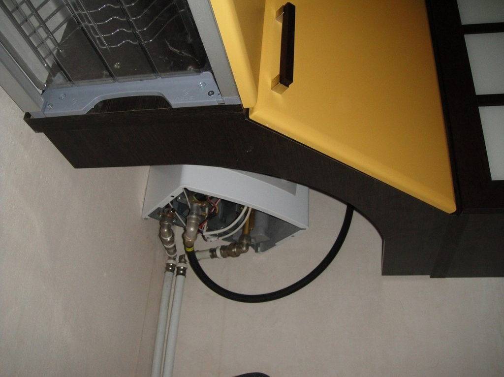 Вместо ниши можно задействовать угловой отсек кухонного гарнитура, но обязательно обеспечить нужный уровень циркуляции воздуха за счет демонтажа нижней и верхней планки.