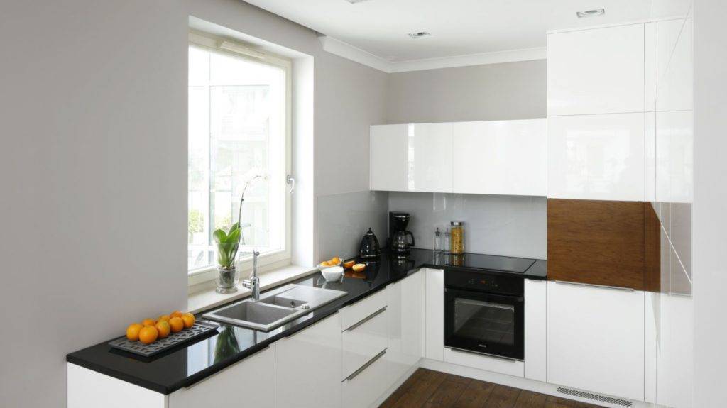 Данный вид планировки не уступает линейной. Она отлично подходит для квадратных помещений. Угловое расположение шкафов экономит площадь и позволяет задействовать угол. Таким образом, рабочего пространства становится больше, и готовить в такой обстановке комфортнее.