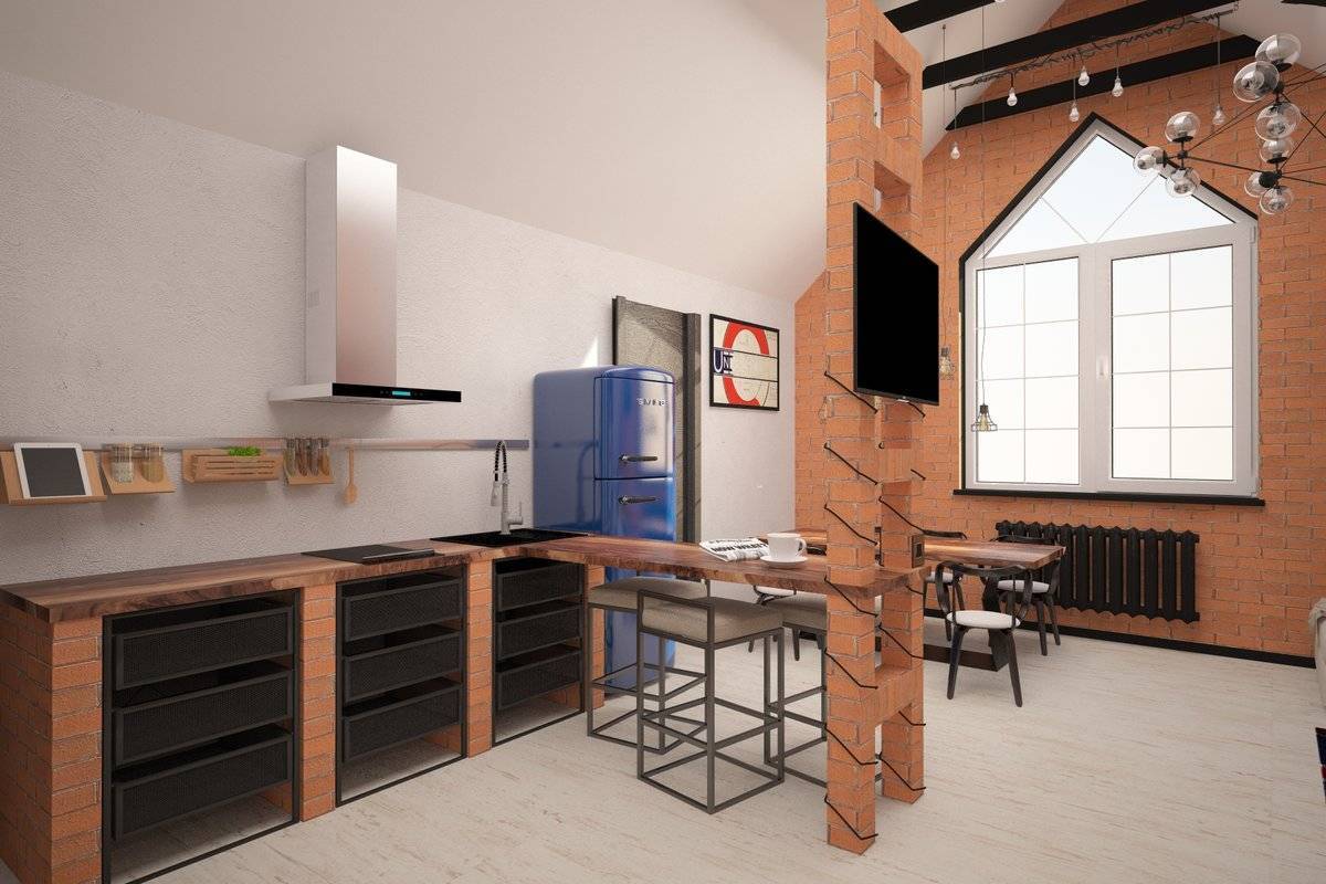 Отделка кухни в стиле лофт