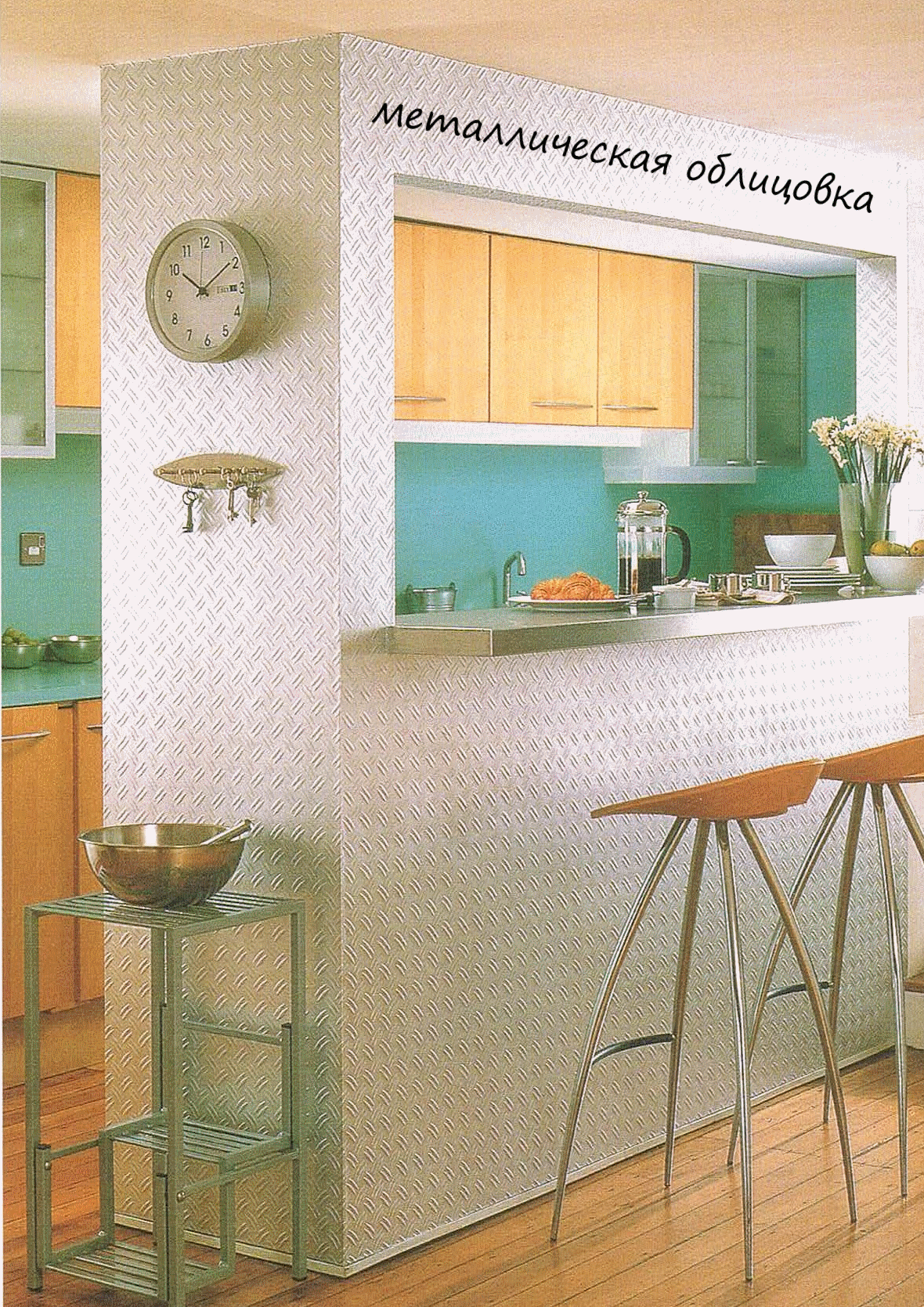 Однако, поскольку белый цвет на кухне не очень практичен, то можно использовать облицовку в виде стальной плитки или обшивки.