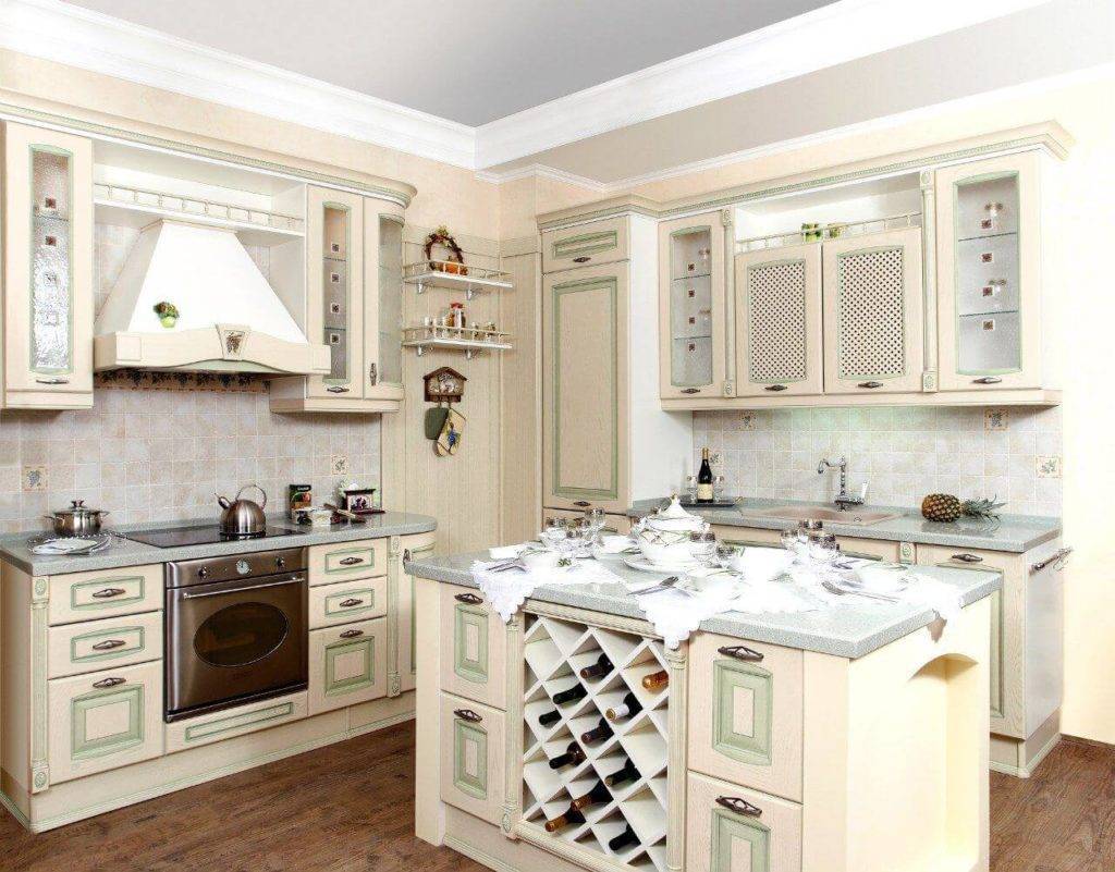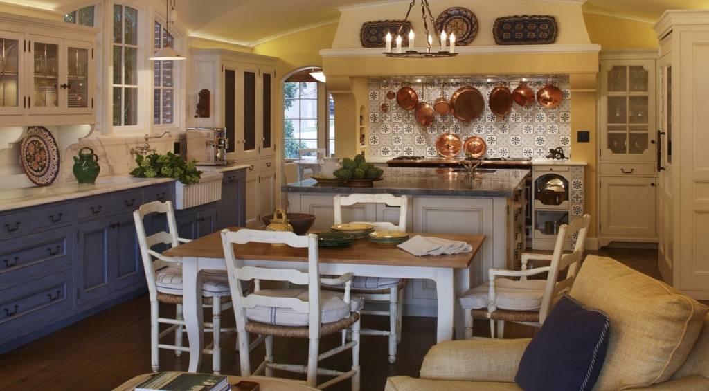 Ценителям эргономичных интерьеров должно понравиться, что планировка кухни в стиле прованс не ограничена строгими правилами и предполагает такую же расстановку модулей, как и в любом современном направлении.