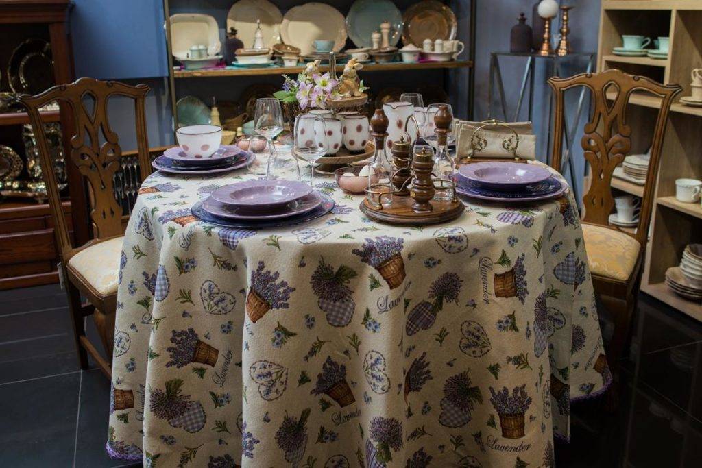 Скатерть: ажурную, полотняную, с принтом или просто однотонную;
