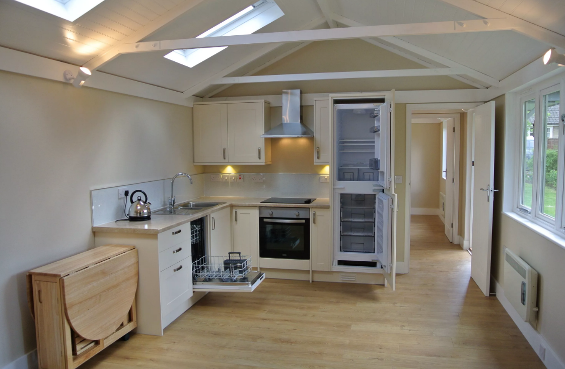 Если дом небольшой, важно экономно использовать имеющееся пространство. Поэтому комнату над гаражом можно оборудовать в кухню.