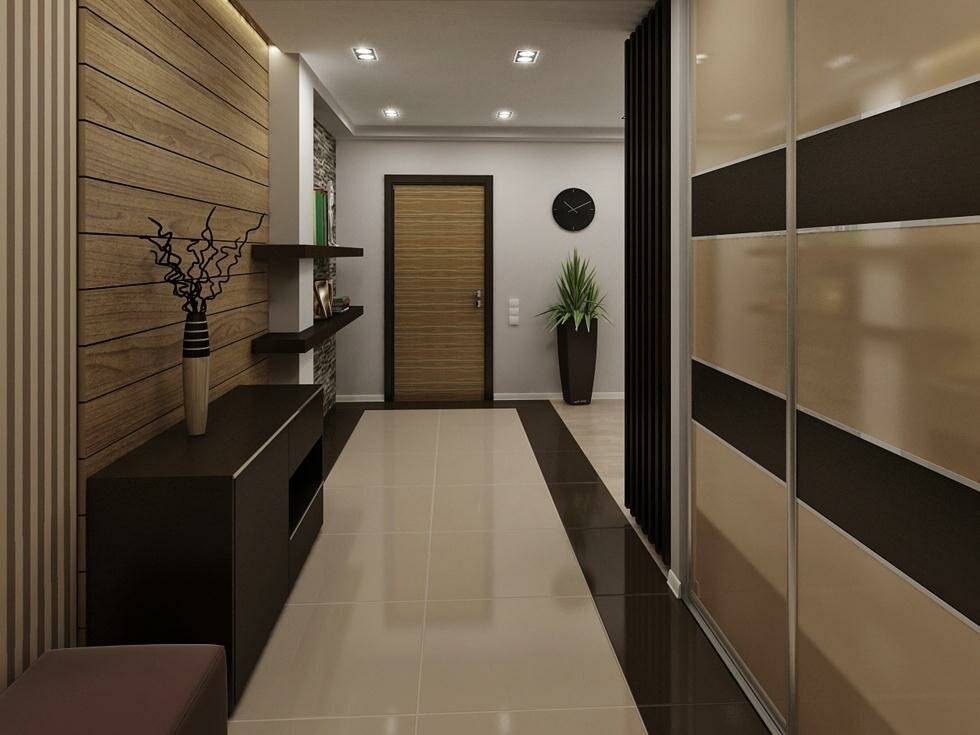 Оформляя прихожую, нужно, в первую очередь, исходить из размеров помещения и общей стилистики квартиры или дома. Поскольку коридоры в российских многоквартирных домах не отличаются большой площадью и подвержены высоким нагрузкам, то желательно выполнить отделку стен износостойкими материалами и в светлых тонах. Также рекомендуется устроить качественную систему освещения. Полы стоит делать из керамогранитной плитки или натурального камня. Из-за недостатка пространства лучше устанавливать встроенную и многофункциональную мебель.