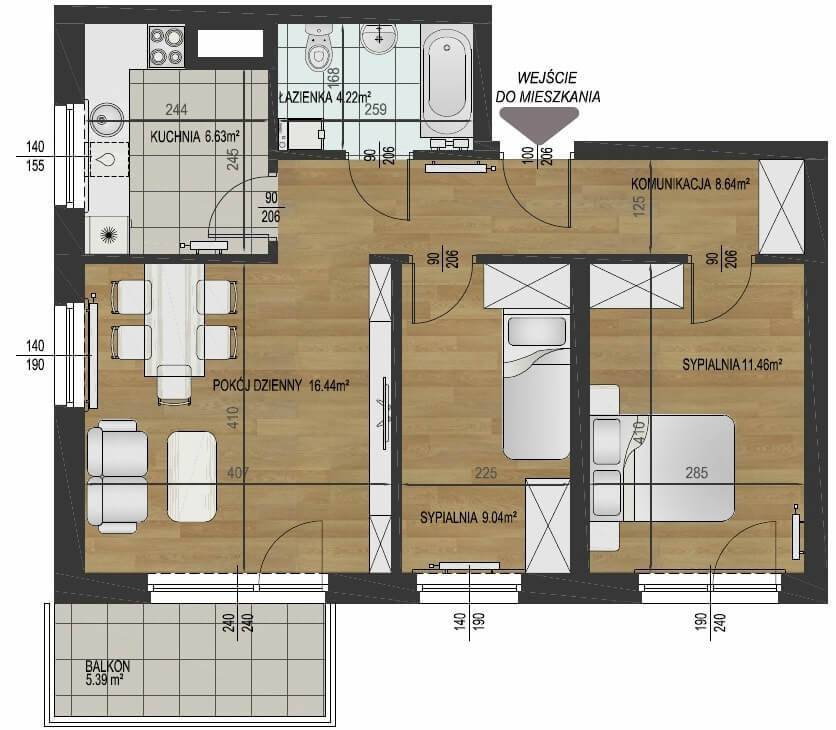 Это уже история, в которой может жить как один человек, так и целая семья. Такой метраж считается самым популярным для двух жилых комнат, поскольку таким образом каждая комната будет содержать достаточно объема для комфортного проживания. Как распоряжаться комнатами – дело каждого и зависит от потребности живущих.