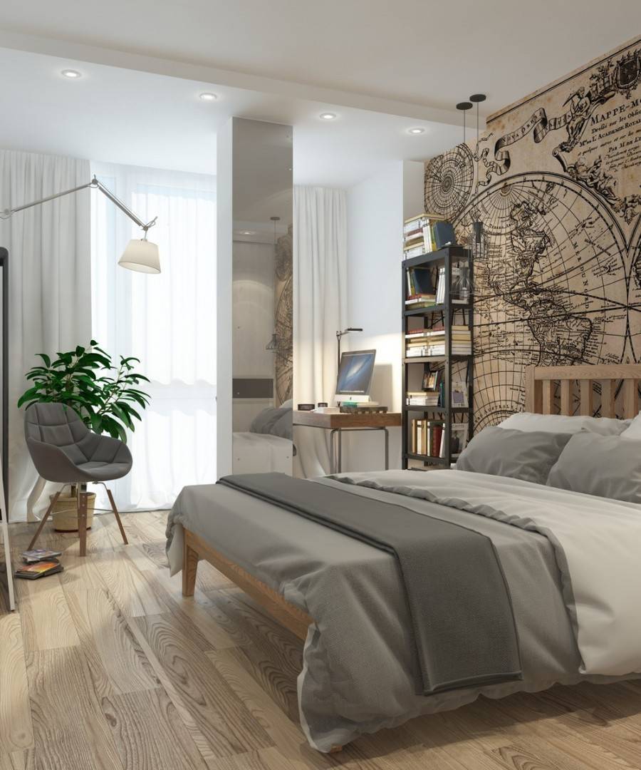 А вот так можно оформить в скандинавском стиле комнату площадью около 25 квадратных метров в двухкомнатной квартире, где будет ещё одна отдельная спальня или детская комната.