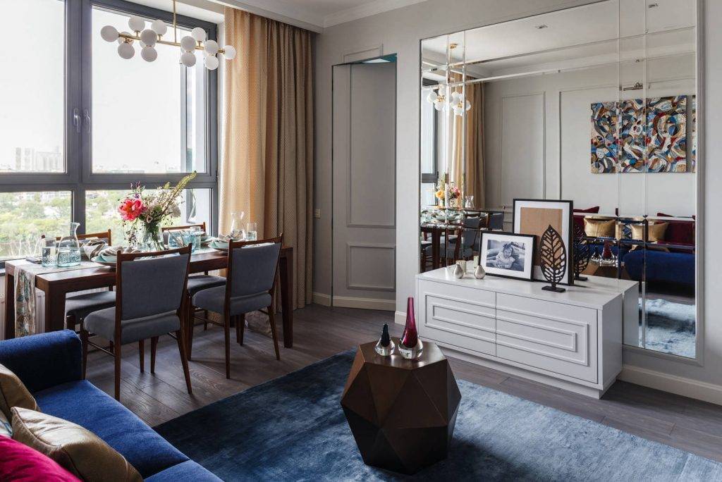 Площадь 60 кв. м позволяет оформить интерьер в классическом стиле. В таком варианте используют четкие, строгие геометрические формы. Активно применяют лепнину, чтобы создать торжественное настроение. Лепные декоративные элементы особенно хорошо будут смотреться на потолке и на дверях. А также стоит присмотреться к таким решениям, как: