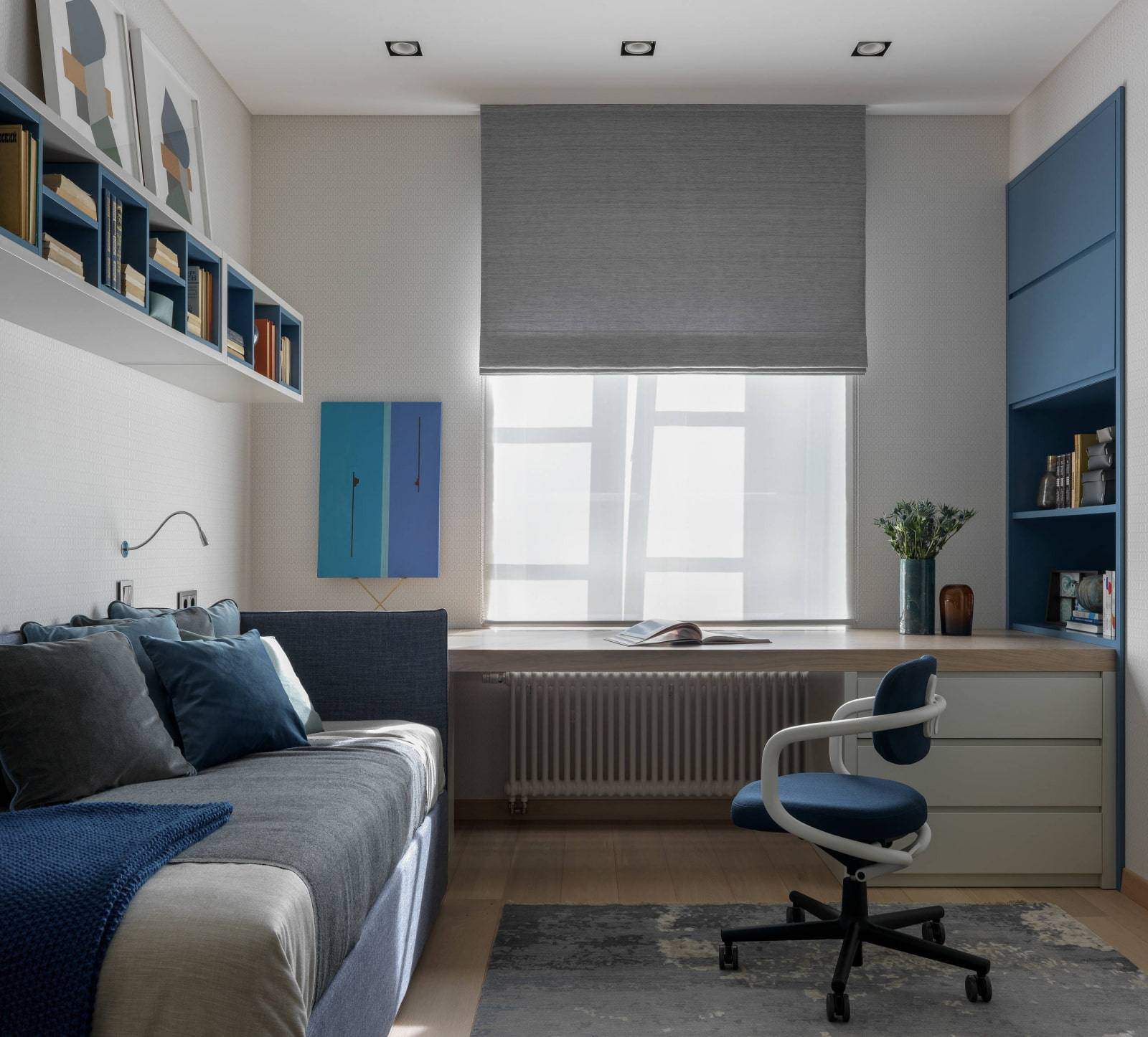 Комнату школьника необходимо спланировать таким образом, чтобы рабочее место было уединенным, тем самым, отгородив его от отвлекающих предметов. Место должно быть оснащено полками для книг и тетрадей. Рабочую зону следует оформить цветами, которые способствуют мозговой активности и концентрации внимания. Это может быть желтый, зеленый, оранжевый или синий. Можно использовать в качестве декора образовательные предметы, такие как глобус, модель Солнечной системы, картины, интерьерные цифры и буквы. Нельзя забывать о качественном освещении рабочего места, чтобы ребенку было комфортно и приятно заниматься.