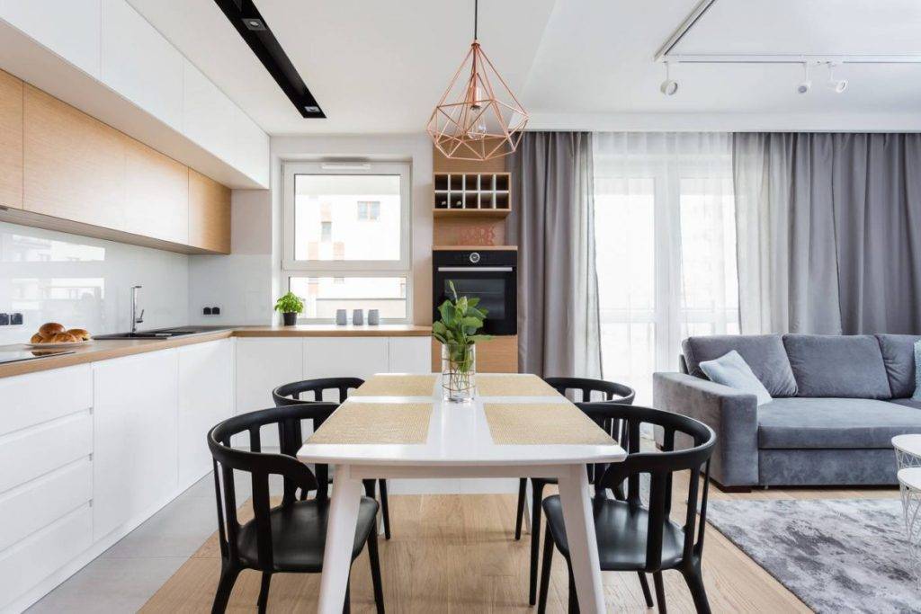 При обустройстве жилой комнаты с кухней вы должны решить: использовать два типа полов или один тип, покрывающих всю поверхность? Учитывайте не только внешний вид помещения, но и комфорт. Помните, что некоторые решения не будут хорошо работать в помещениях, которые особенно подвержены воздействию влаги и пятен, которые трудно удалить.