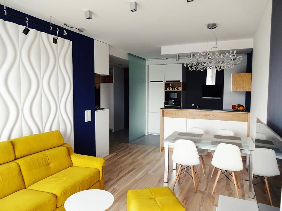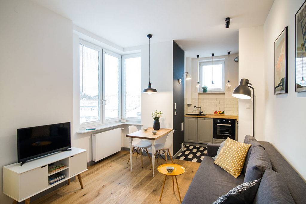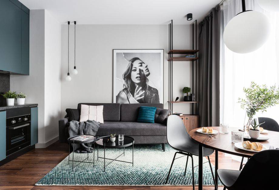 Распределить пространство в такой маленькой квартире – целое искусство. Не останавливайтесь на одном типе зонирования, сочетайте варианты.