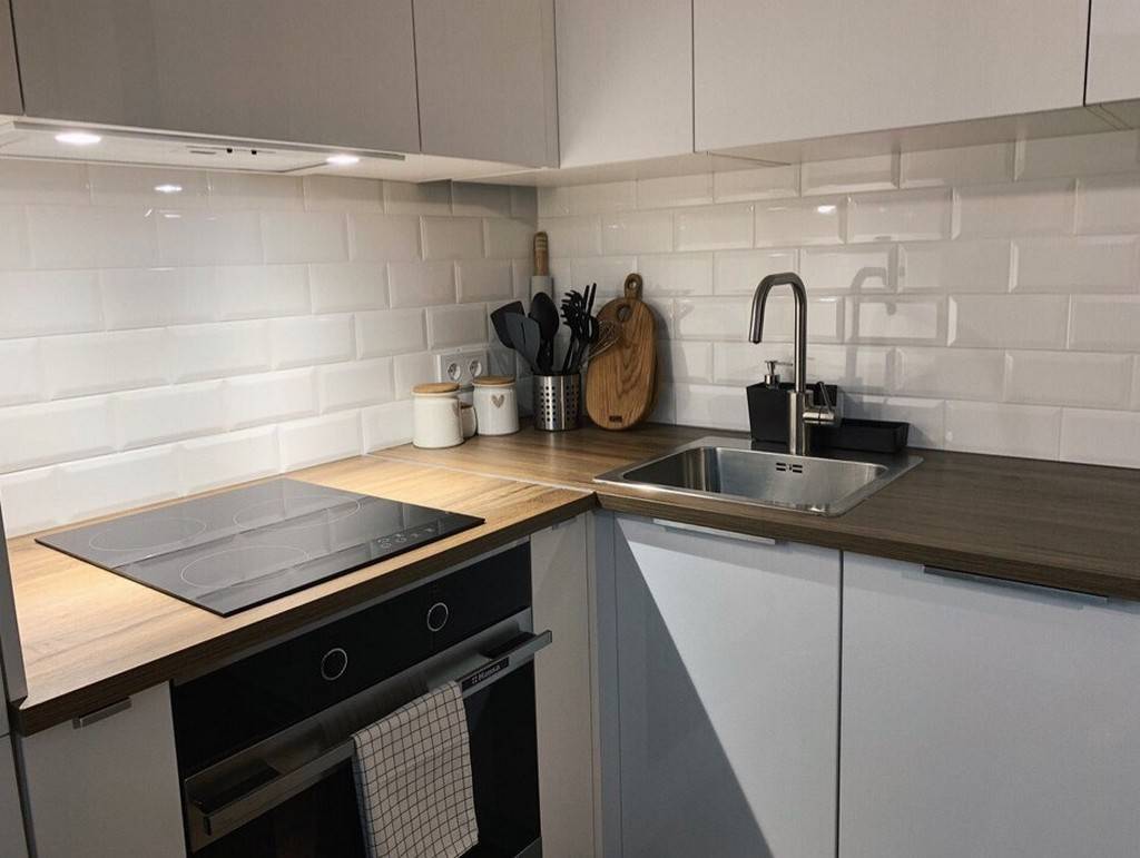 Желательно выбрать встроенный вариант для техники. Таким образом, кухонный гарнитур будет смотреться компактней;