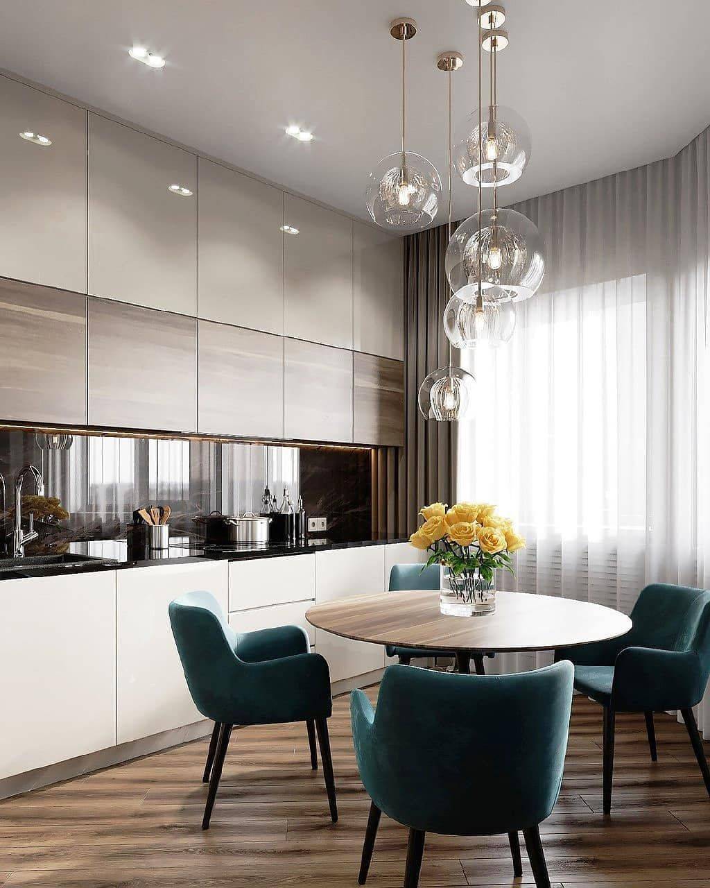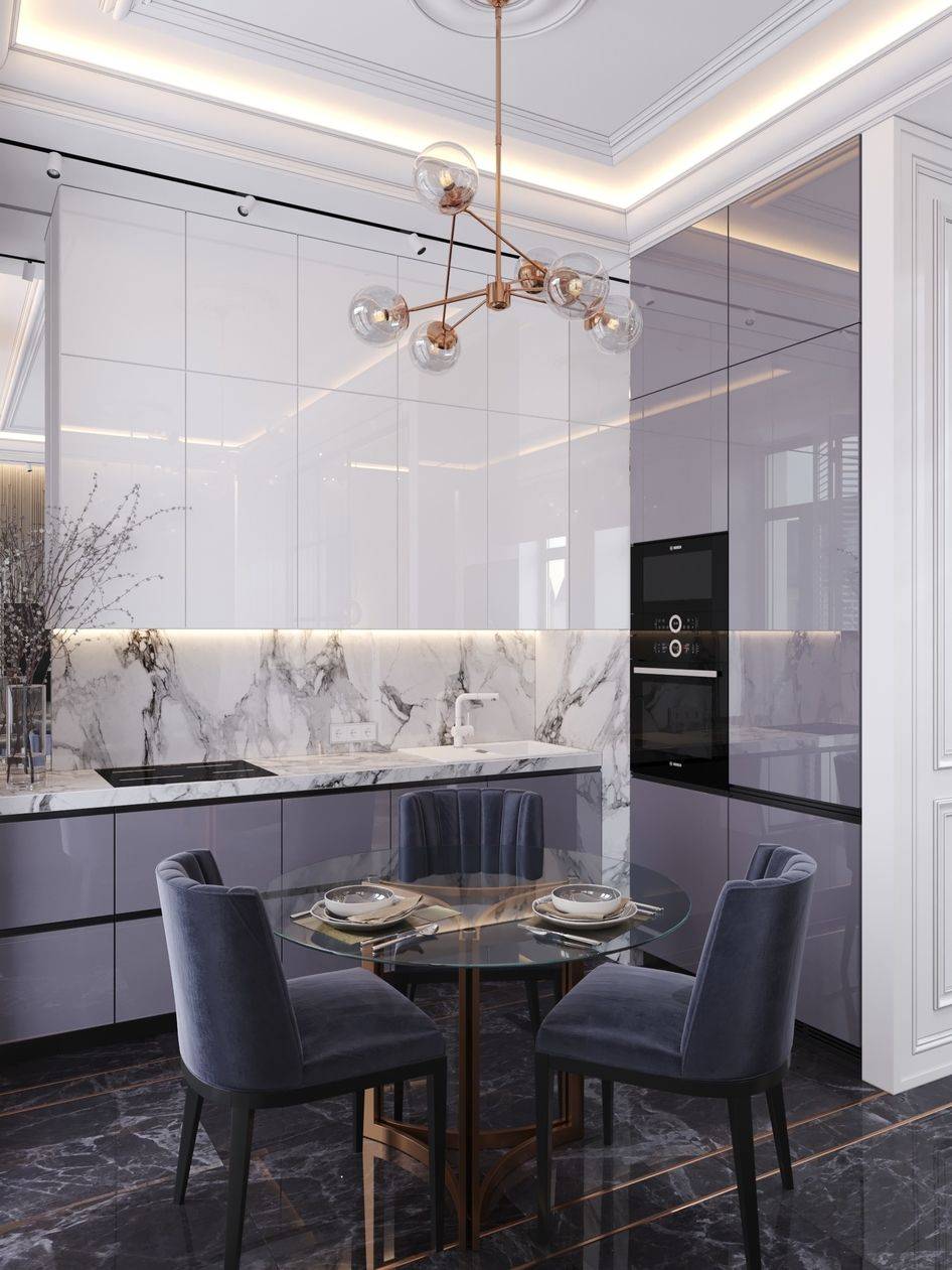 Какие кухни будут модными в 2020 году и в последующие годы? Открытые пространства, сочетающие функции кухни, столовой и гостиной, безусловно, будут главенствовать. Белоснежные глянцевые кухни уходят в прошлое, которые вытесняются красочной кухонной мебелью с матовой отделкой. Мрамор, металлическое великолепие и благородные породы дерева также добавят элегантности современной кухне 2020 года.