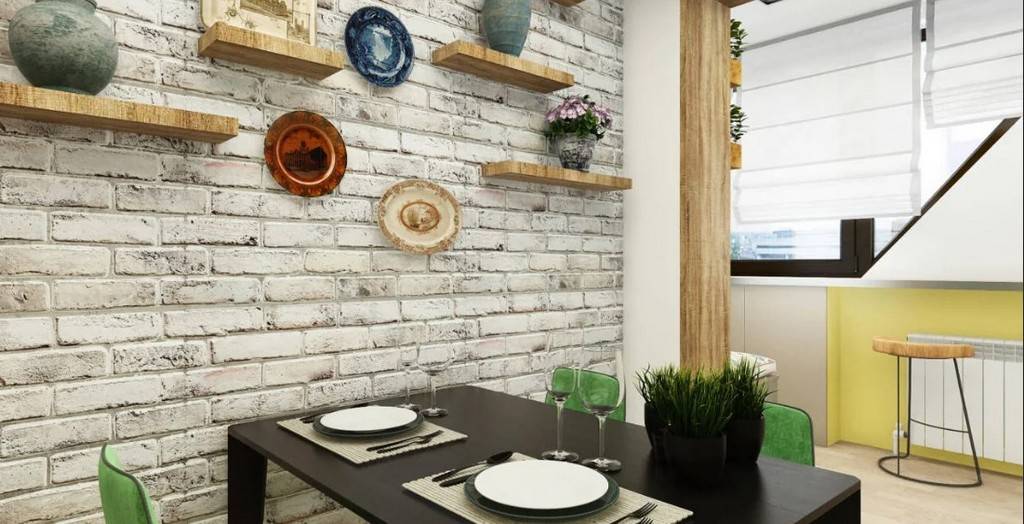 Яркий акцент на стене хорошо смотрится в обеденной зоне и создает особое настроение;