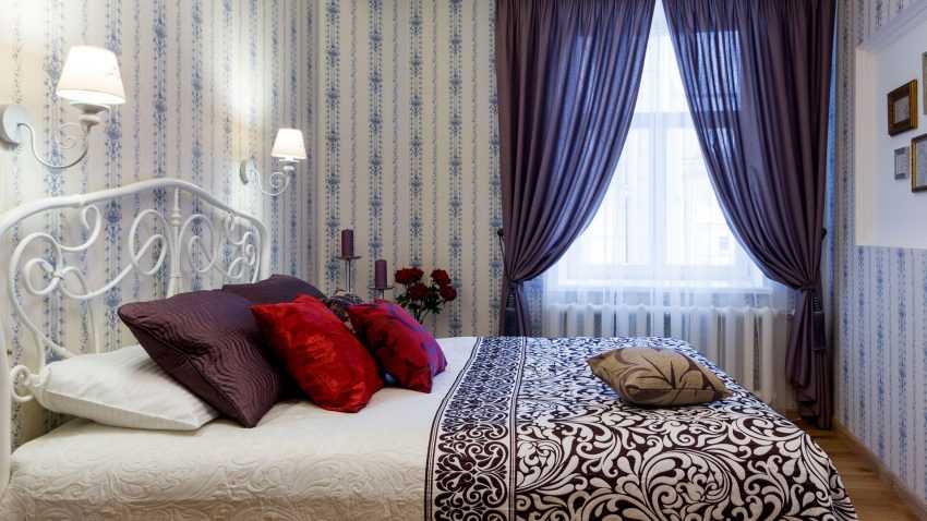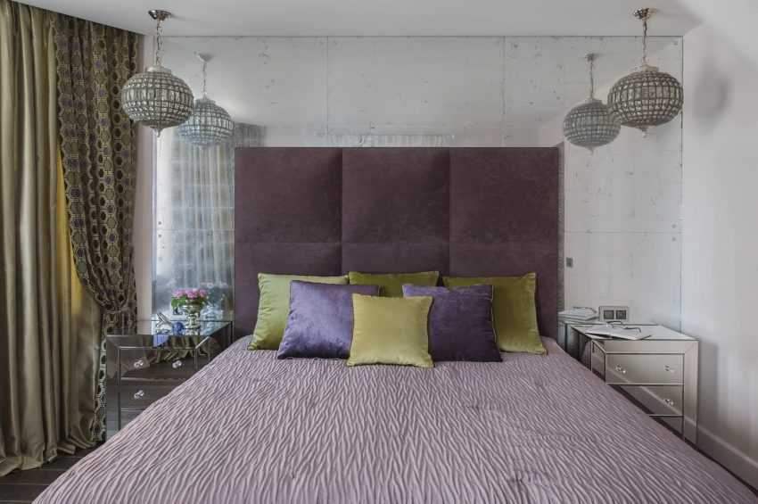 Фиолетовый оттенок в спальне небольшого размера