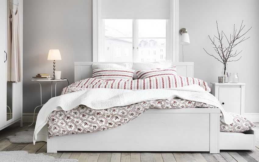 Для начала решите, что для вас является этим необходимым. Обязательным элементом, конечно, служит кровать. Прикроватные тумбы, стол, стул или шкаф – все эти предметы могут находиться в другой комнате, но, если есть необходимость, разместить их получится и здесь. Только нужно тщательно подходить к их выбору