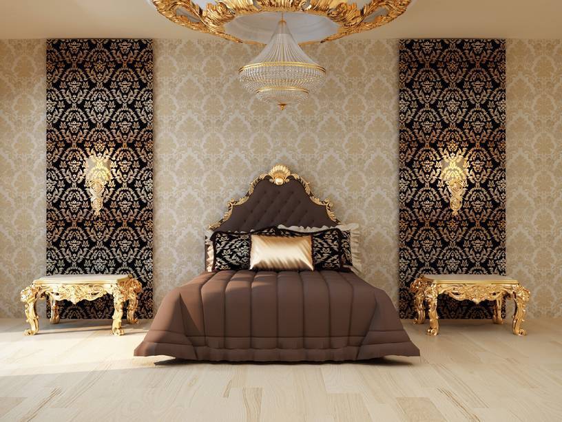 - дамаск — это интересный узор, его стоит располагать по всей территории помещения;