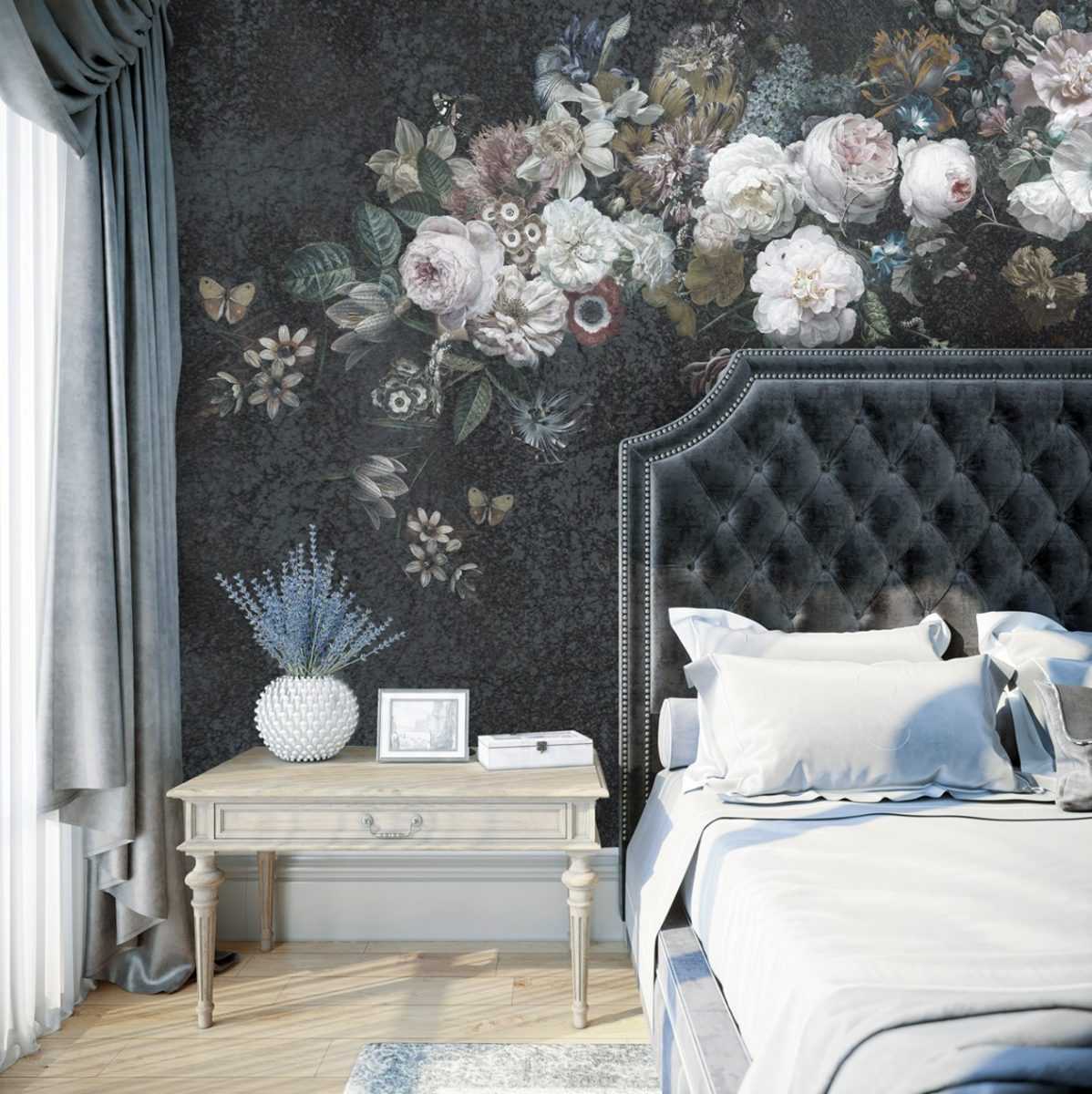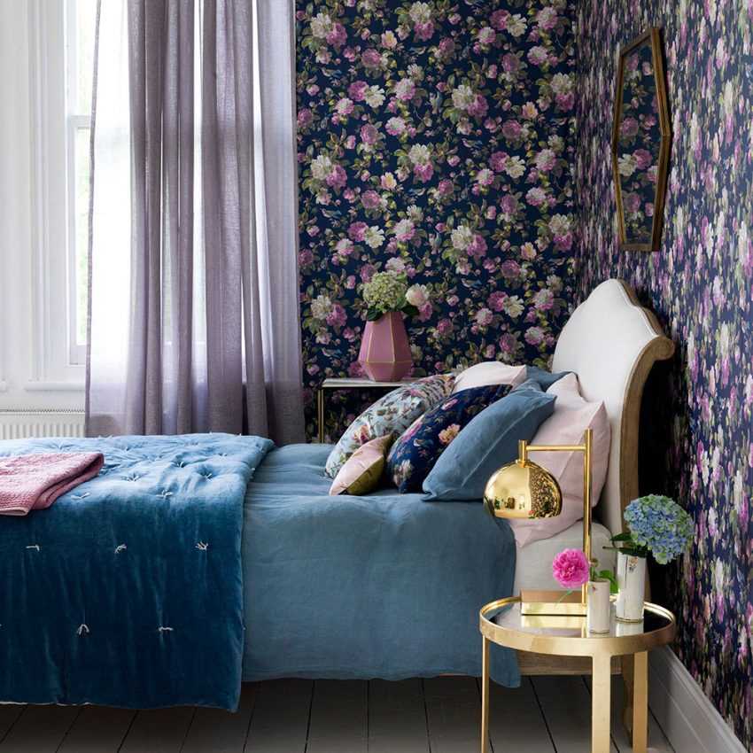 - Людям, которым нравятся элементы экспо-стиля или арт-деко, стоит выбирать обои с флористическими принтами.