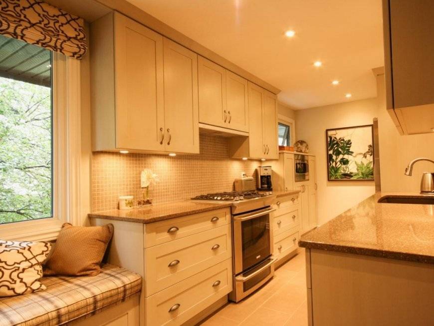В некоторых случаях одна линия гарнитура проходит у сплошной стены, а для второй остается свободное место только у стены с окном. Не стоит этого бояться, такая планировка имеет свои преимущества: