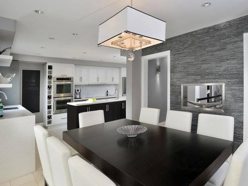 - Зонирование светом. Например, установка люстры или подвесных светильников в зоне столовой и точечных светильников в зоне кухни.