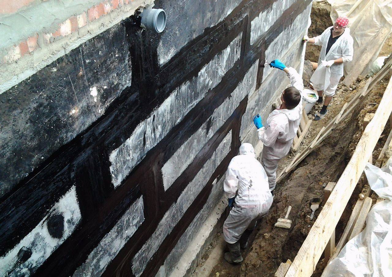 - Вся бетонная конструкция тщательно обрабатывается проникающим составом. Один из самых популярных и недорогих материалов – битумная смесь. Это повысит эксплуатационный уровень помещения и подготовит его к финишной отделке.