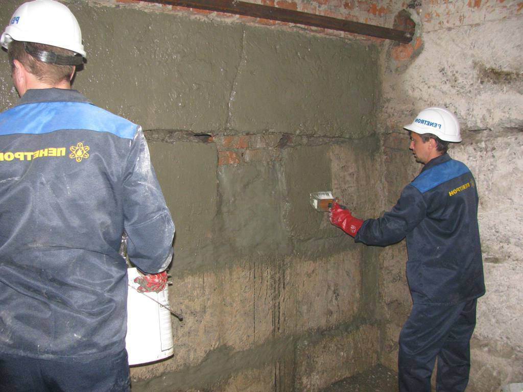 После этого проводят полную влагозащиту стен и потолка стен и потолка. Лучше применить в комплексе проникающую и рулонную гидроизоляцию.