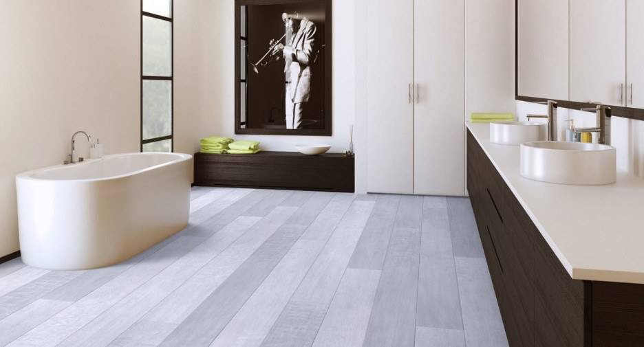 Но вот в ванной комнате данный отделочный материал практически незаменим. Много влаги не позволяет укладывать в данной комнате ламинат. Да и паркет тоже может испортиться от большого количества воды. Ламинатная плитка же позволит оформить пол под дерево даже в этой комнате.