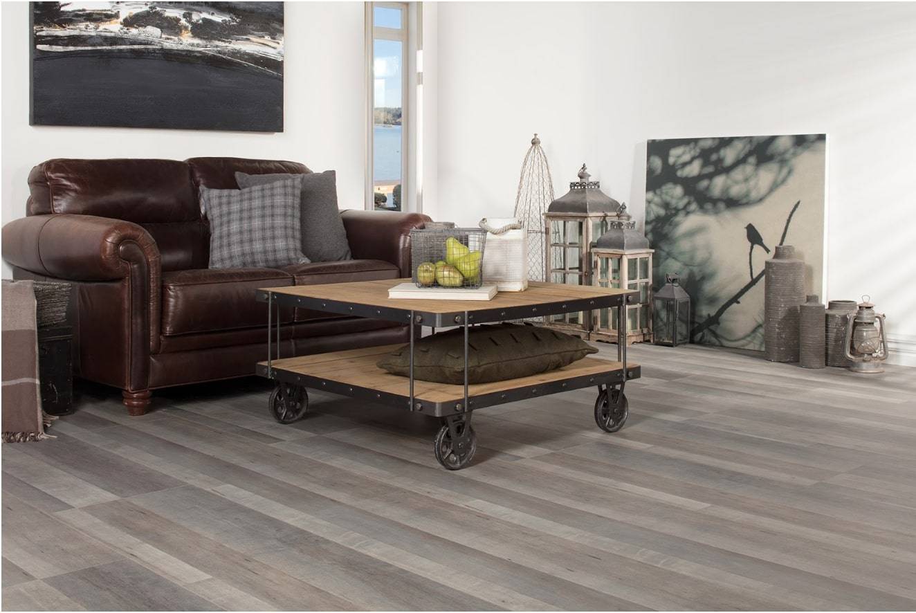 В этой категории тоже преобладает ламинат цвета натурального дуба, что ближе по расцветке к природной древесине этого могучего дерева. Более насыщенные оттенки серого стоит искать под наименованиями, начинающимися с названия природных камней. Ровный серый тон характерен для обветренной сосны.