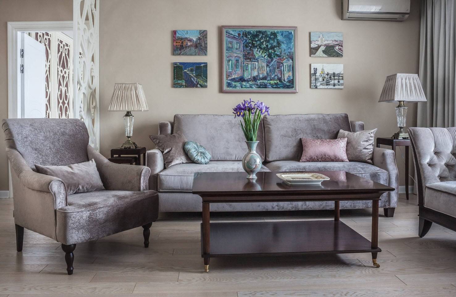 Светло-серый цвет часто используется при выборе обивки мебели, он выгодно подчеркивает формы кресел, диванов, кроватей, при этом не выглядит скучно. В таком случае, позаботьтесь о других цветовых акцентах. Положите яркие подушки, стены украсьте картинами, фотообоями