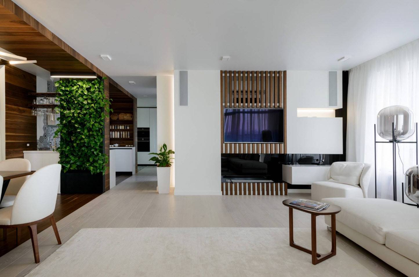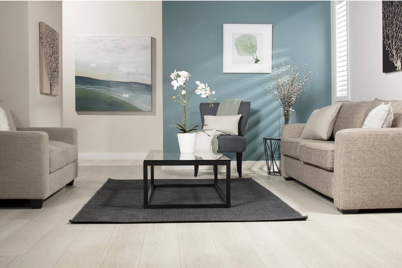 Светлый ламинат на полу гостиной в скандинавском стиле